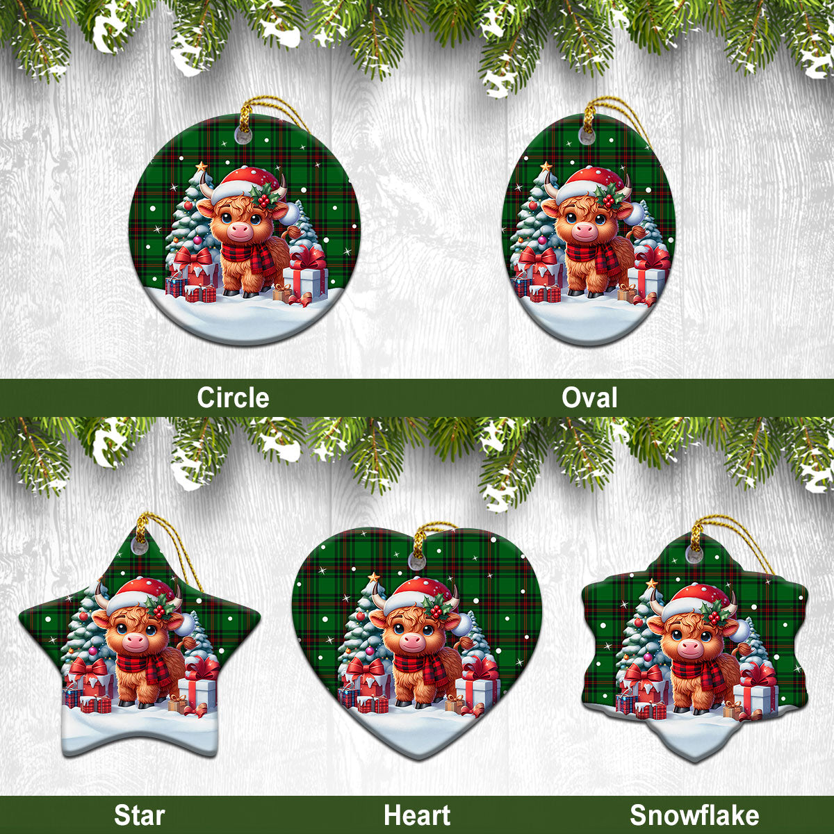 Kinnear Tartan Christmas Ceramic Ornament - Highland Cow Winter Style