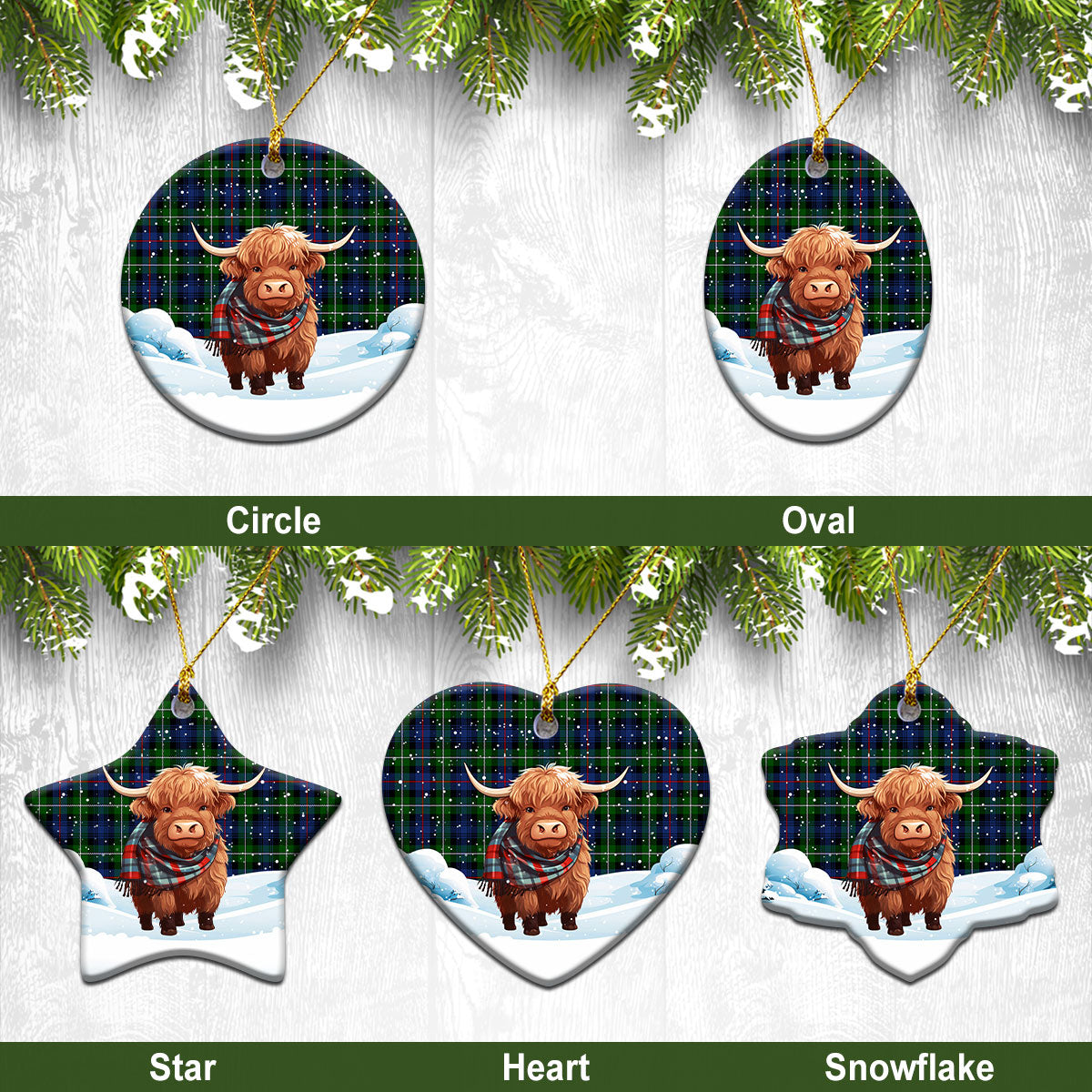 Kirkpatrick Tartan Christmas Ceramic Ornament - Highland Cows Snow Style