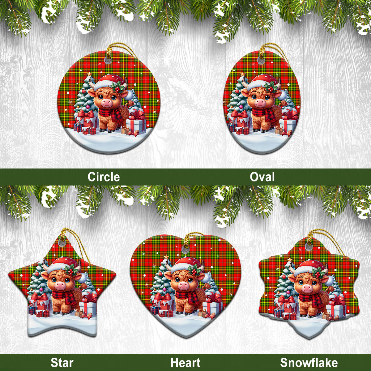 Leask Tartan Christmas Ceramic Ornament - Highland Cow Winter Style