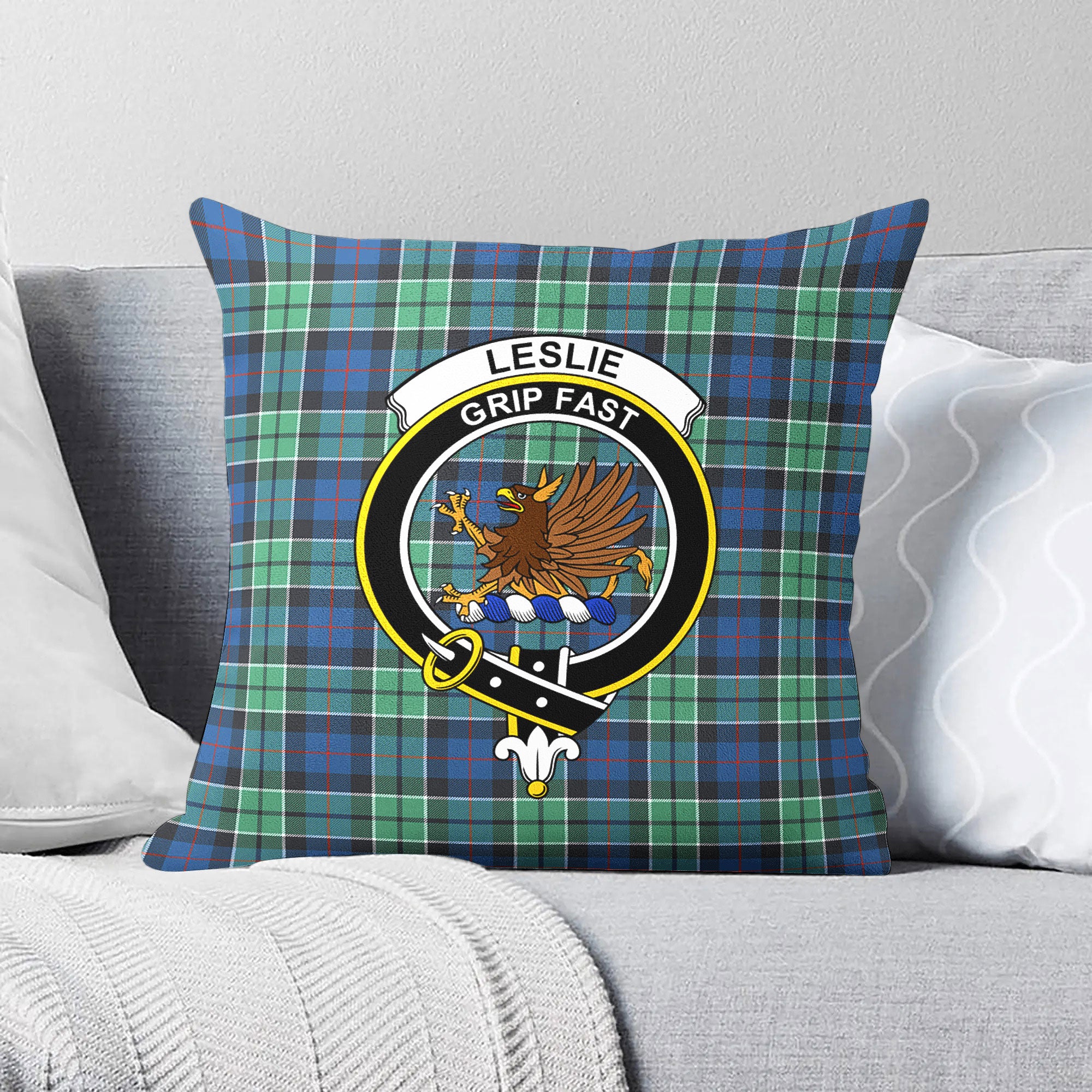 Leslie Hunting Ancient Tartan Crest Pillow Cover