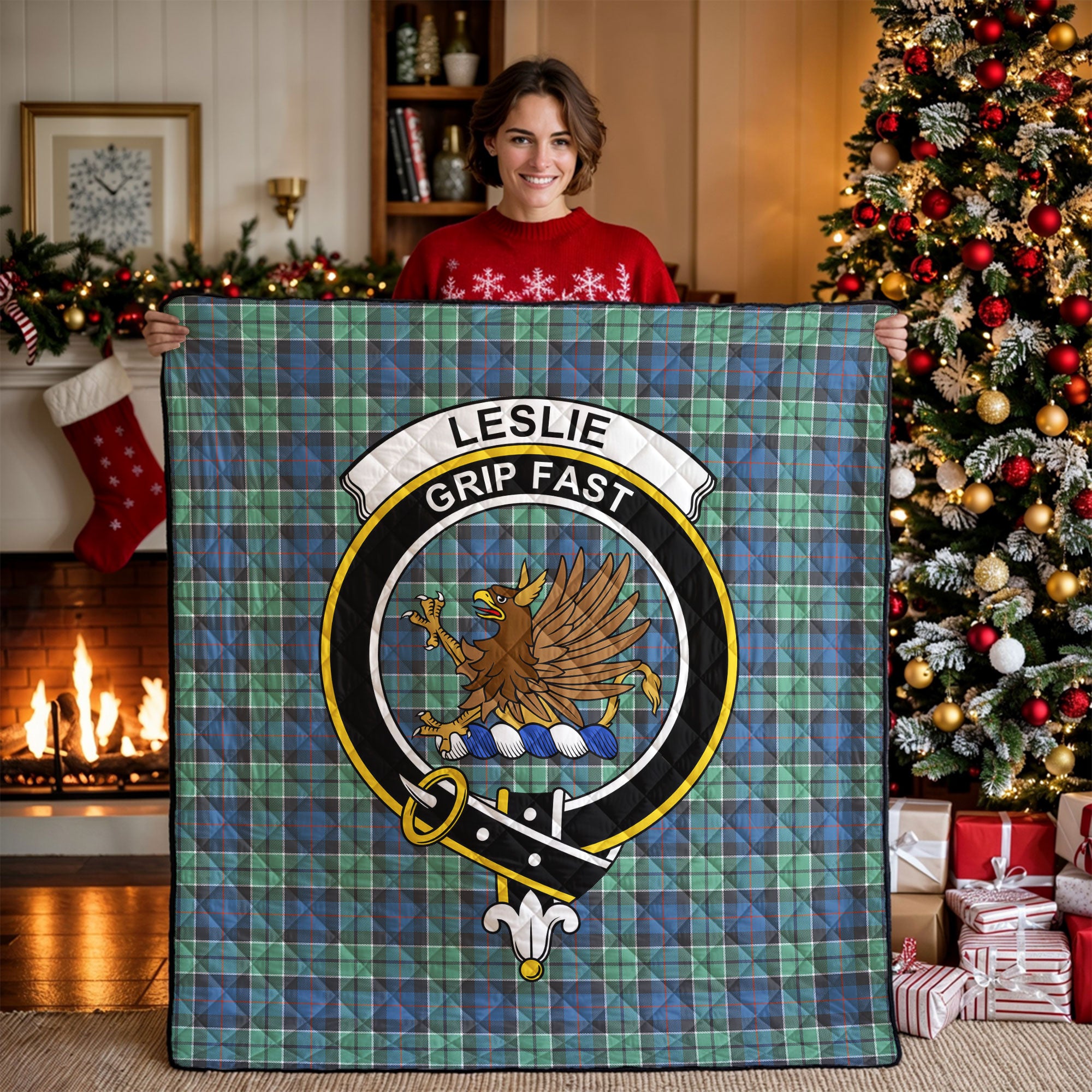 Leslie Hunting Ancient Tartan Crest Quilt