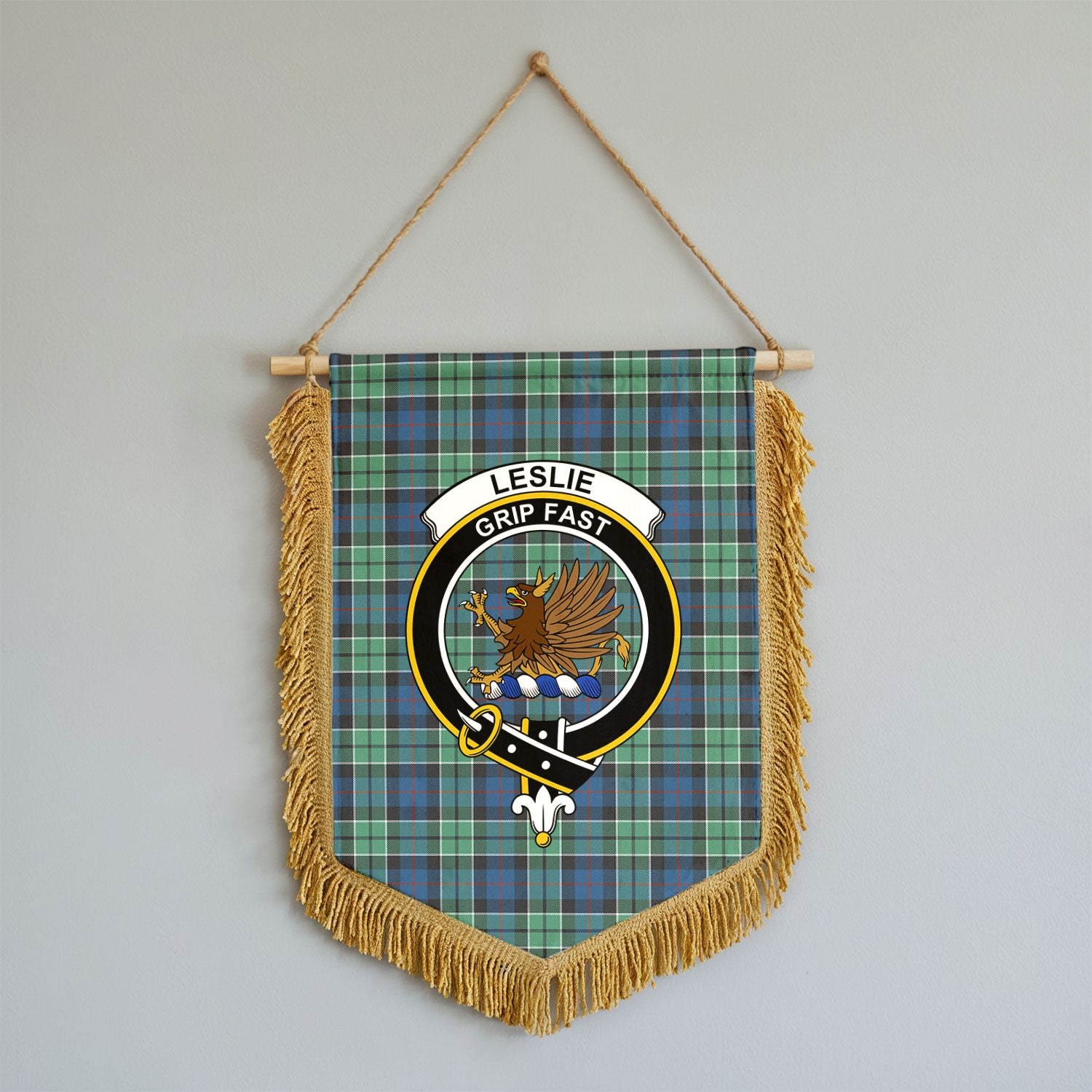 Leslie Hunting Ancient Tartan Crest Wall Hanging Banner - Wood Pole