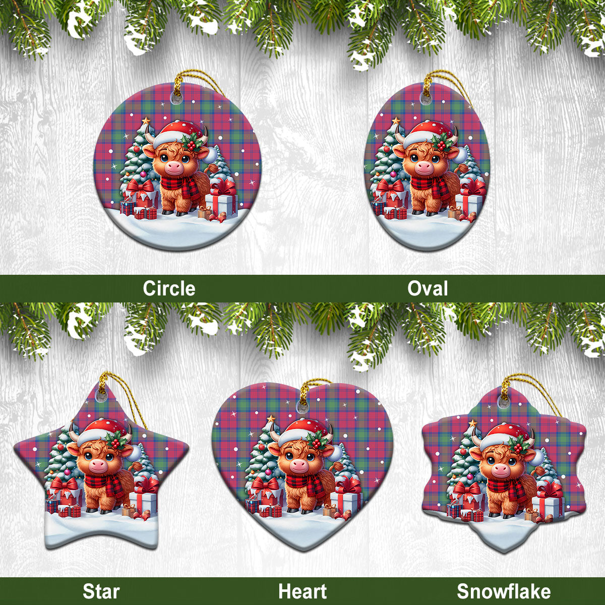 Lindsay Ancient Tartan Christmas Ceramic Ornament - Highland Cow Winter Style