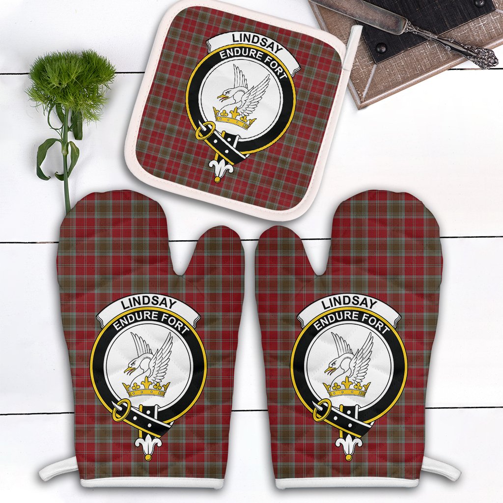 Lindsay Weathered Tartan Crest Oven Mitt And Pot Holder (2 Oven Mitts + 1 Pot Holder)
