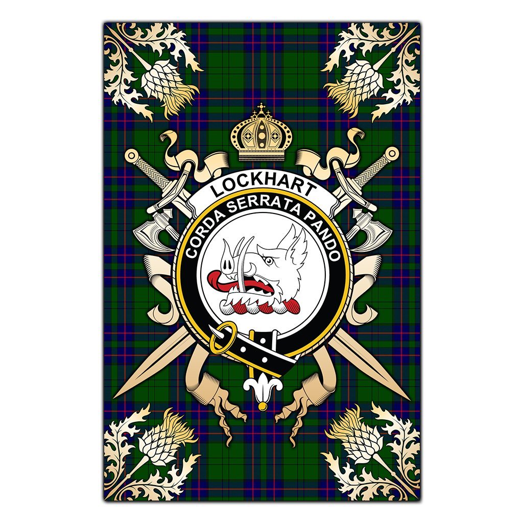 Lockhart Modern Tartan Crest Black Garden Flag - Gold Thistle Style