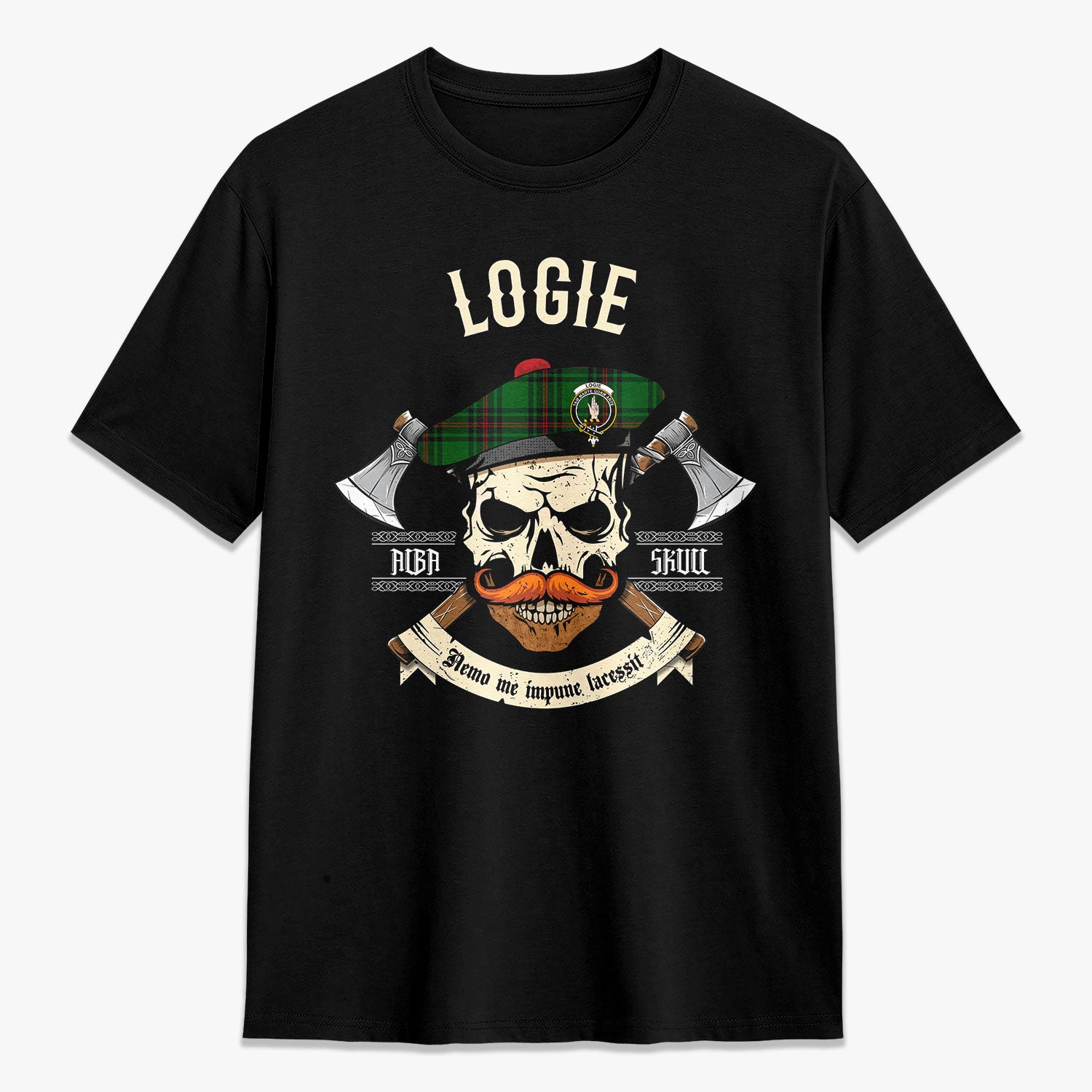 Logie Tartan Crest 2D T-shirt - Alba Skull Style,