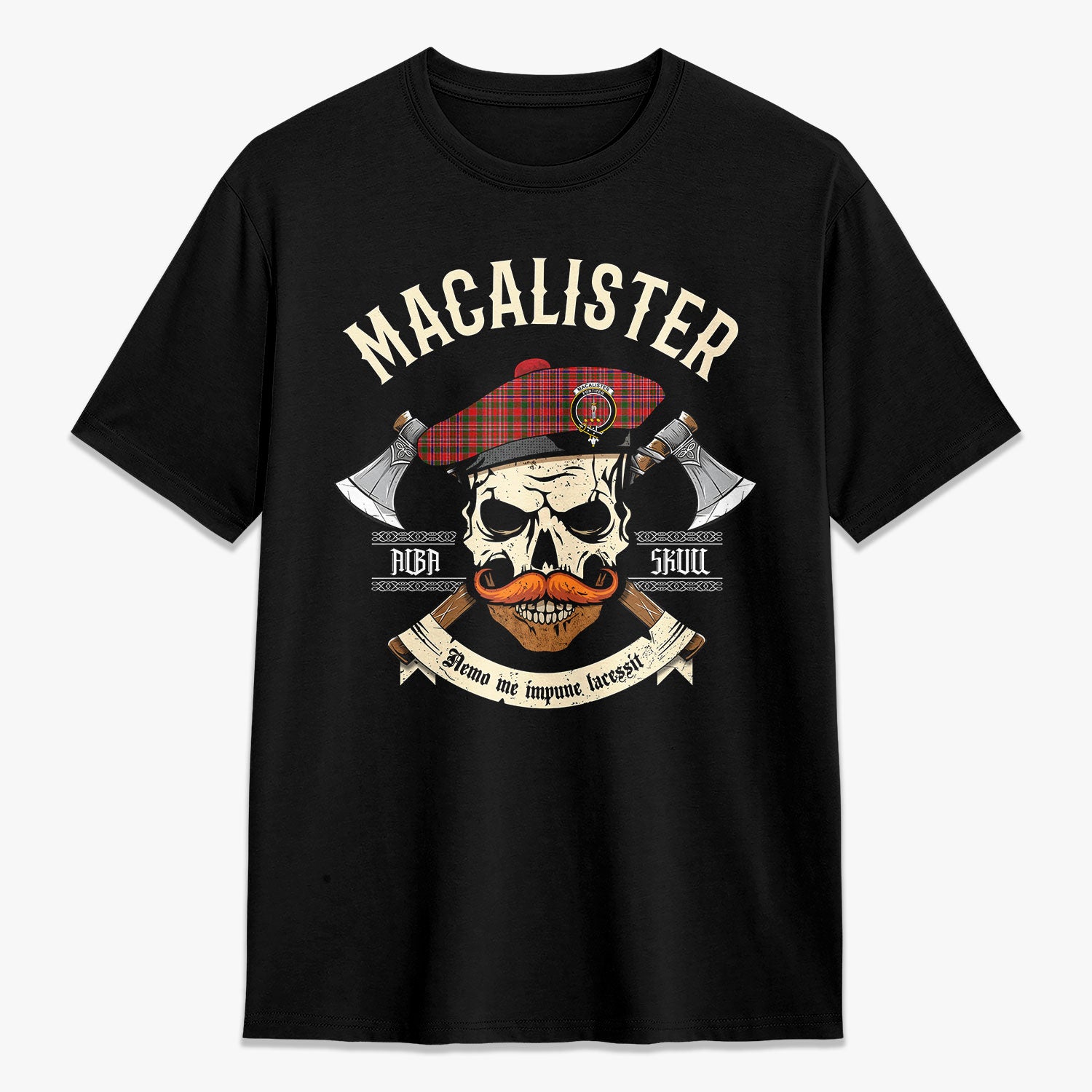 MacAlister Modern Tartan Crest 2D T-shirt - Alba Skull Style,