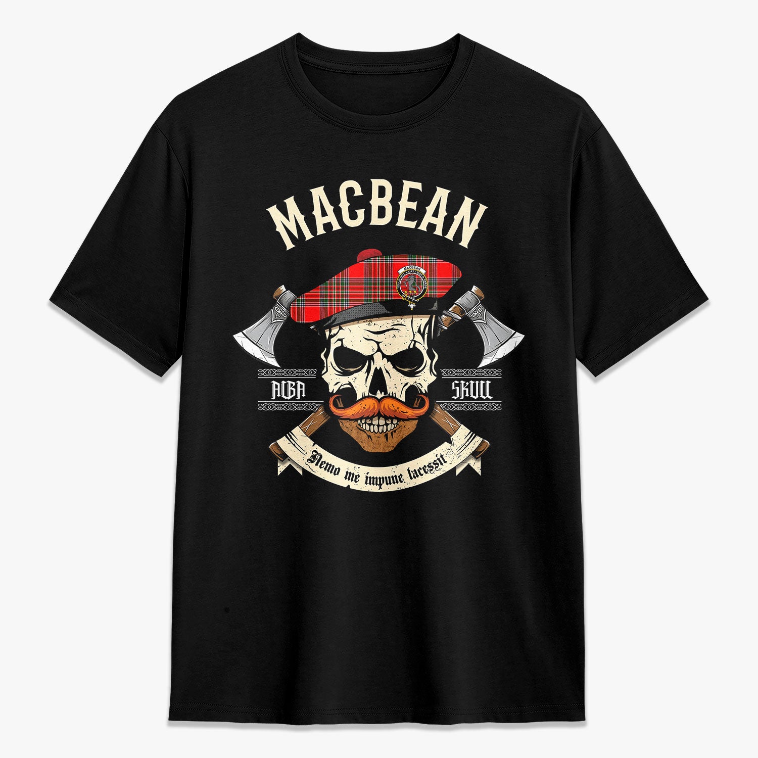 MacBean Tartan Crest 2D T-shirt - Alba Skull Style,