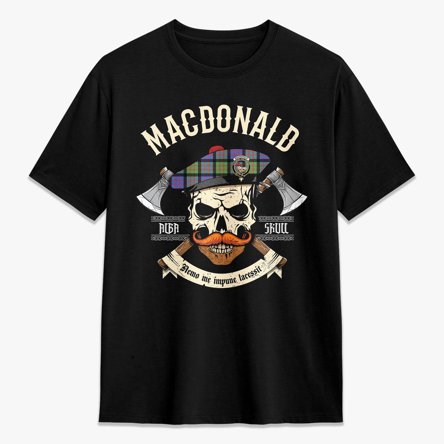 MacDonald Ancient Tartan Crest 2D T-shirt - Alba Skull Style