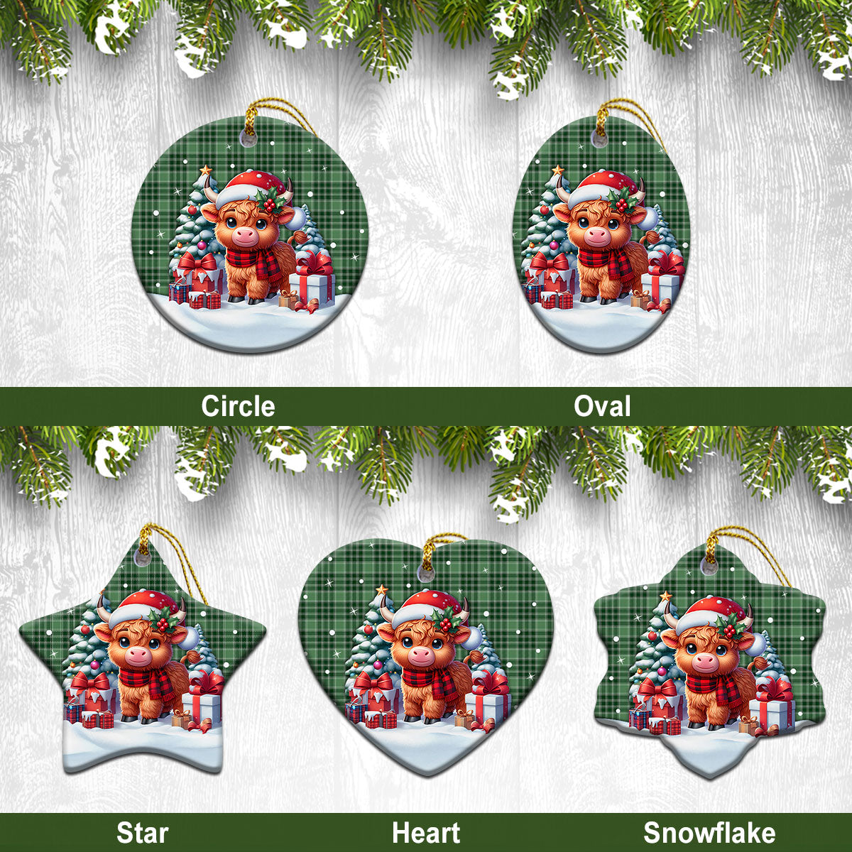 MacDonald Lord of the Isles Hunting Tartan Christmas Ceramic Ornament - Highland Cow Winter Style