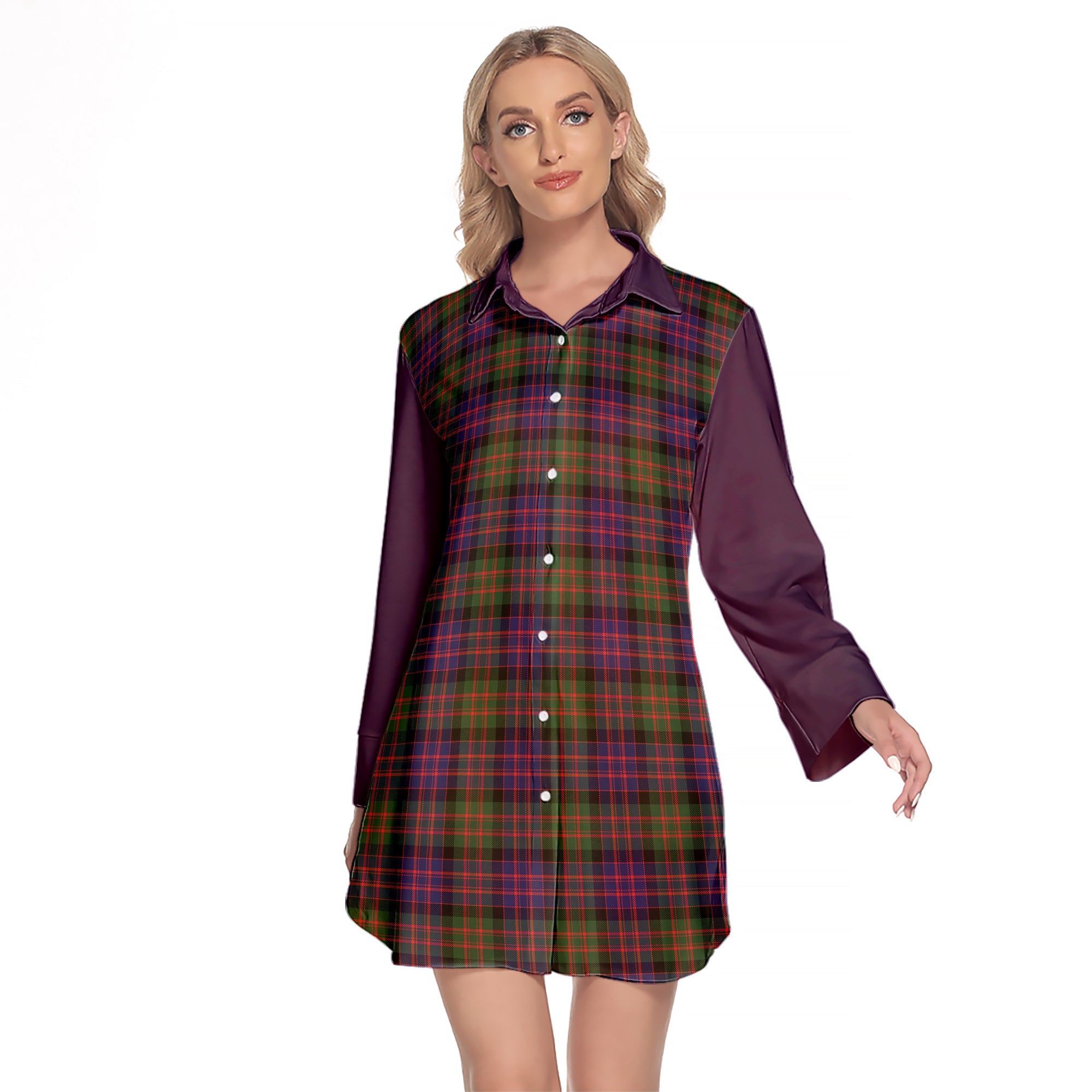 MacDonald Modern Tartan Women's Lapel Shirt Dress With Long Sleeve