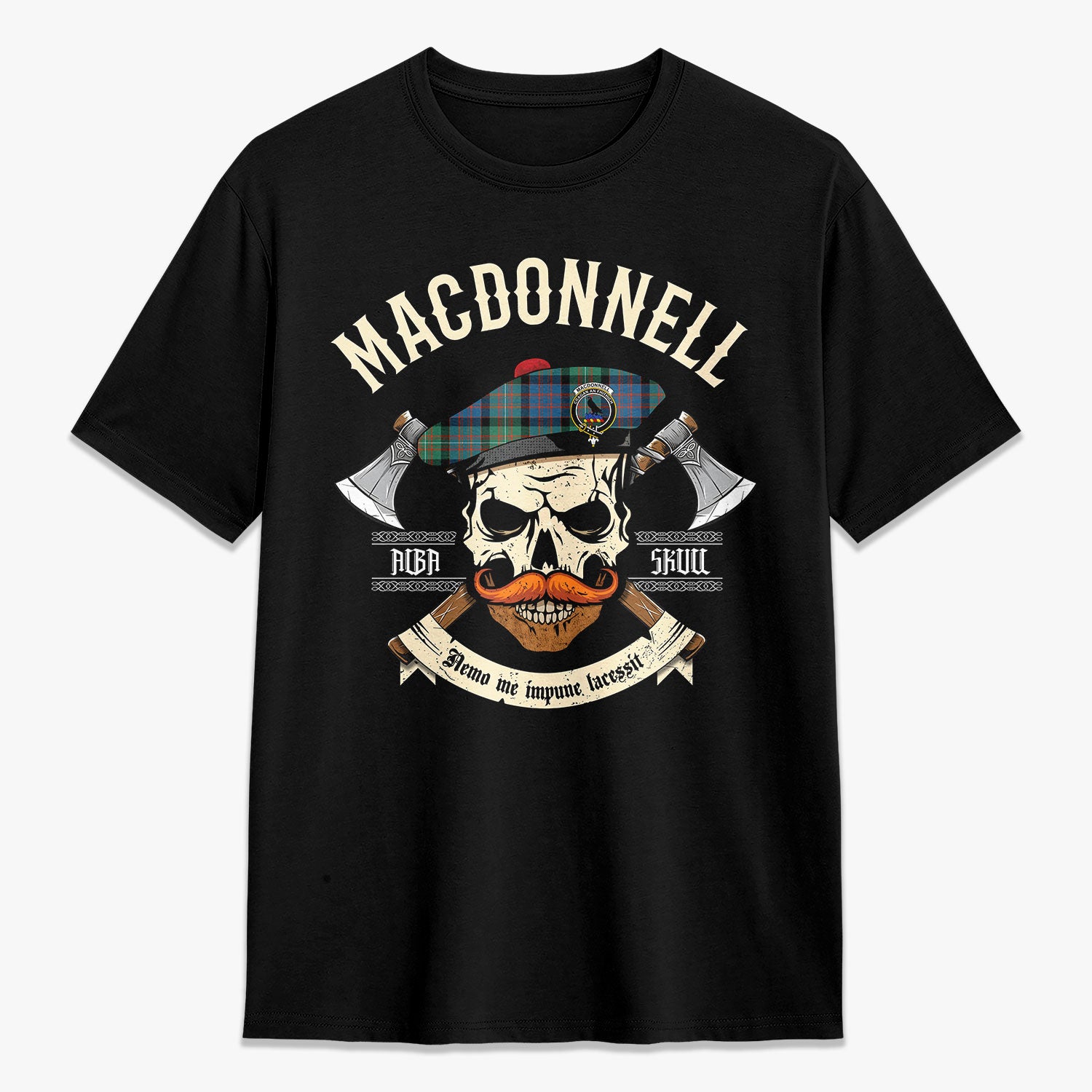 MacDonnell of Glengarry Ancient Tartan Crest 2D T-shirt - Alba Skull Style