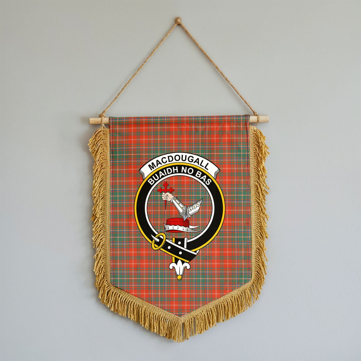 MacDougall Ancient Tartan Crest Wall Hanging Banner - Wood Pole