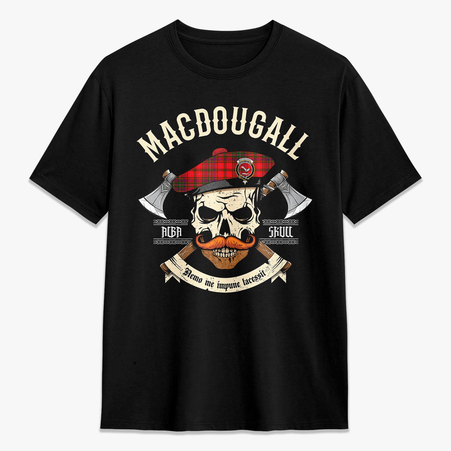 MacDougall Modern Tartan Crest 2D T-shirt - Alba Skull Style