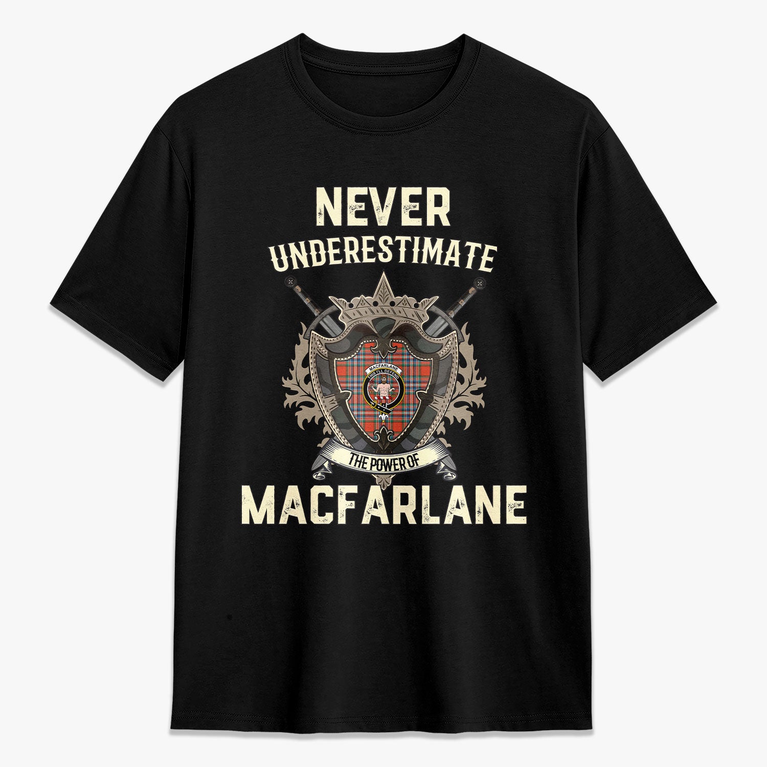 MacFarlane Ancient Tartan Crest 2D T-shirt - Never Underestimate Style