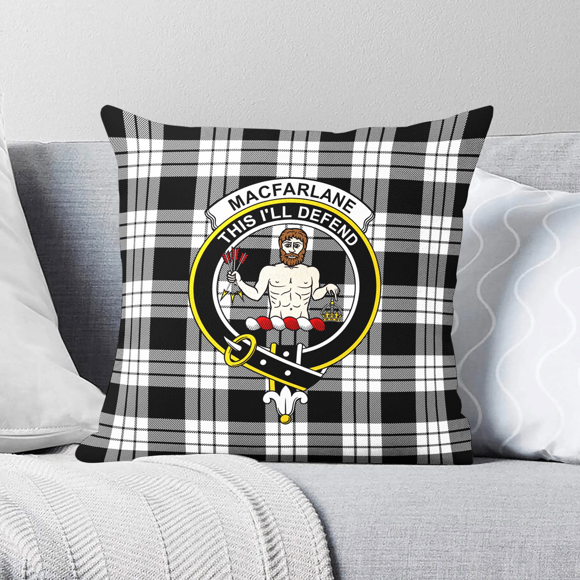 MacFarlane Black - White Tartan Crest Pillow Cover