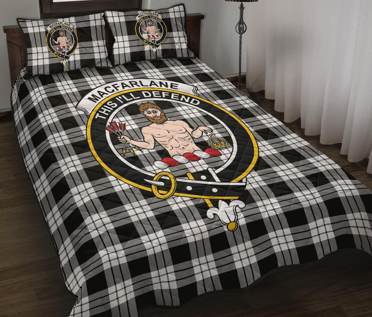 MacFarlane Black & White Tartan Crest Quilt Bed Set