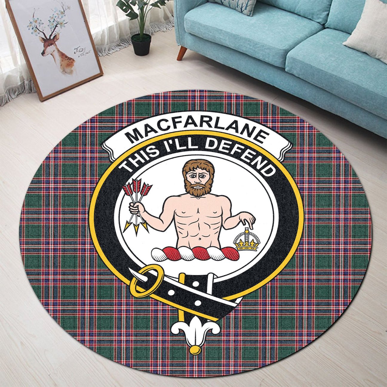 MacFarlane Hunting Modern Tartan Crest Round Rug