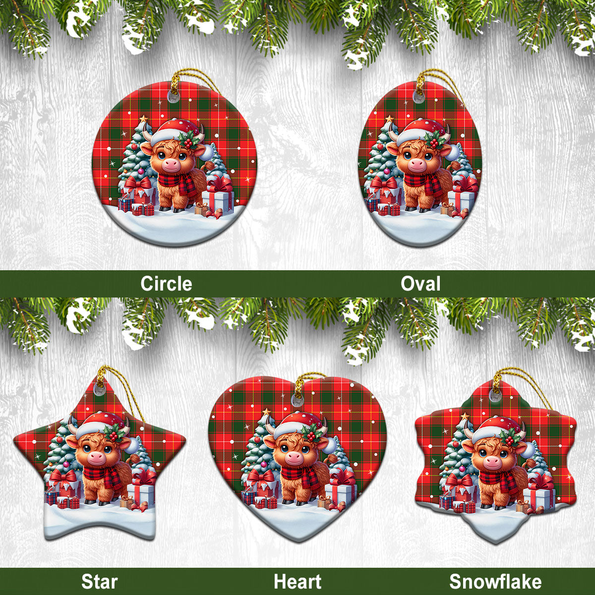MacFie Tartan Christmas Ceramic Ornament - Highland Cow Winter Style