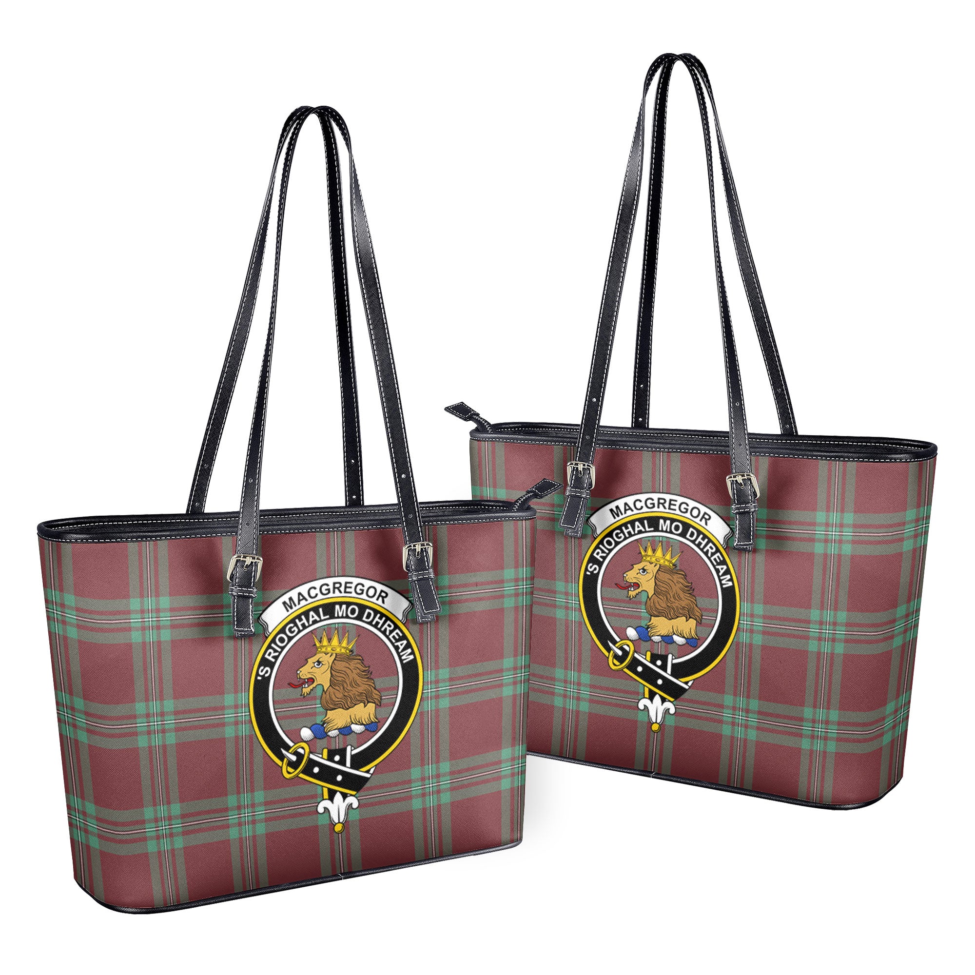 MacGregor Hunting Ancient Tartan Crest Leather Tote Bag