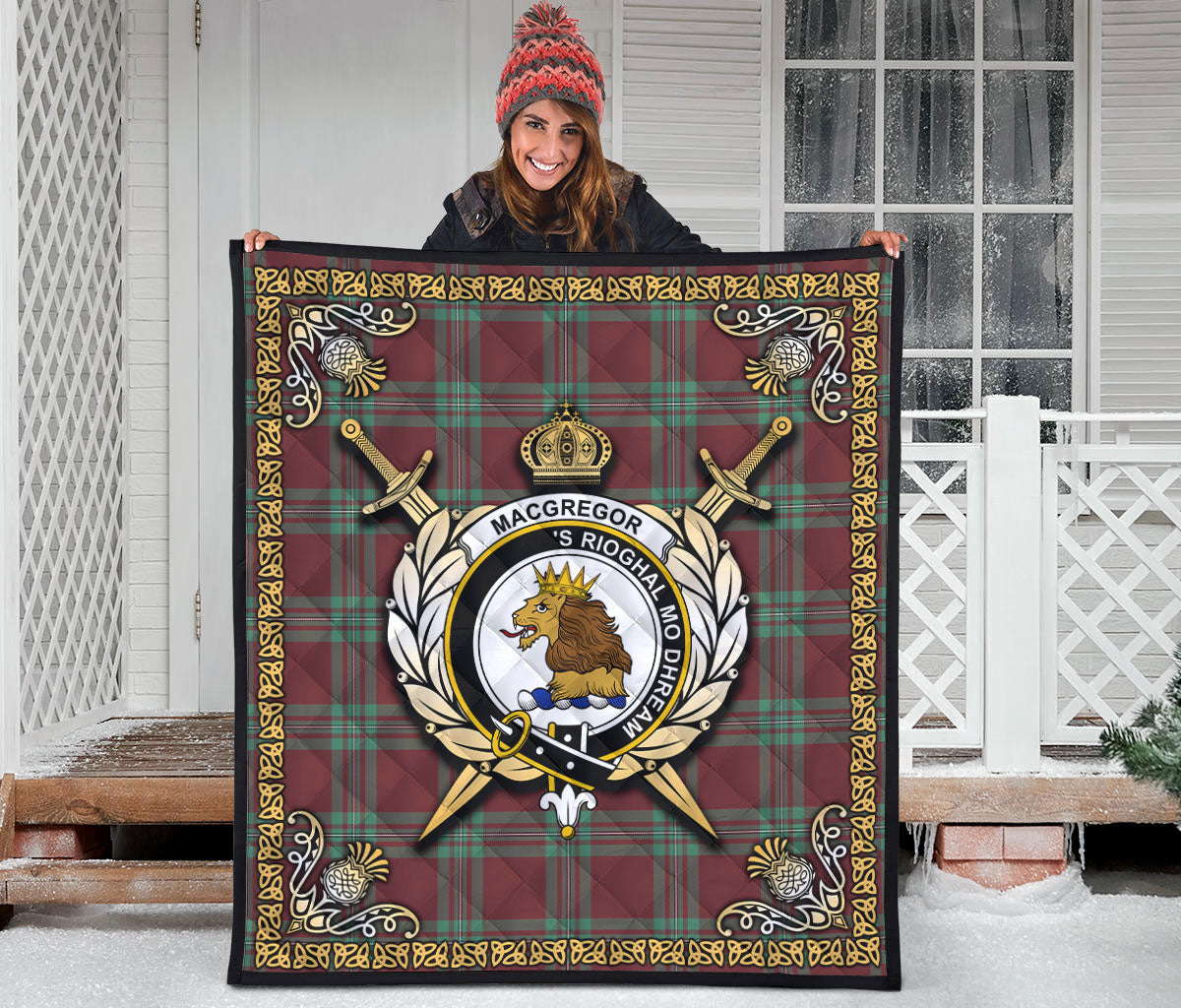 MacGregor Hunting Ancient Tartan Crest Premium Quilt - Celtic Thistle Style
