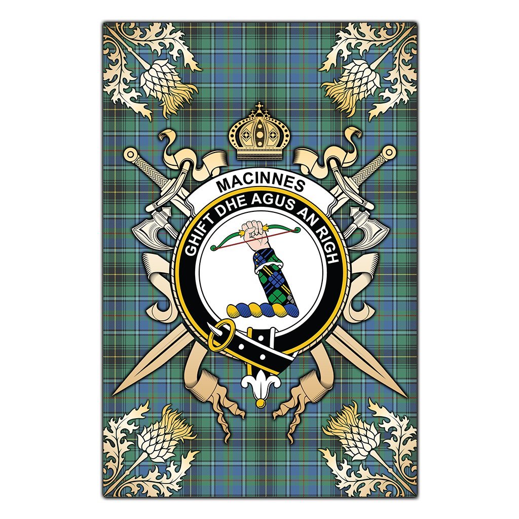 MacInnes Ancient Tartan Crest Black Garden Flag - Gold Thistle Style