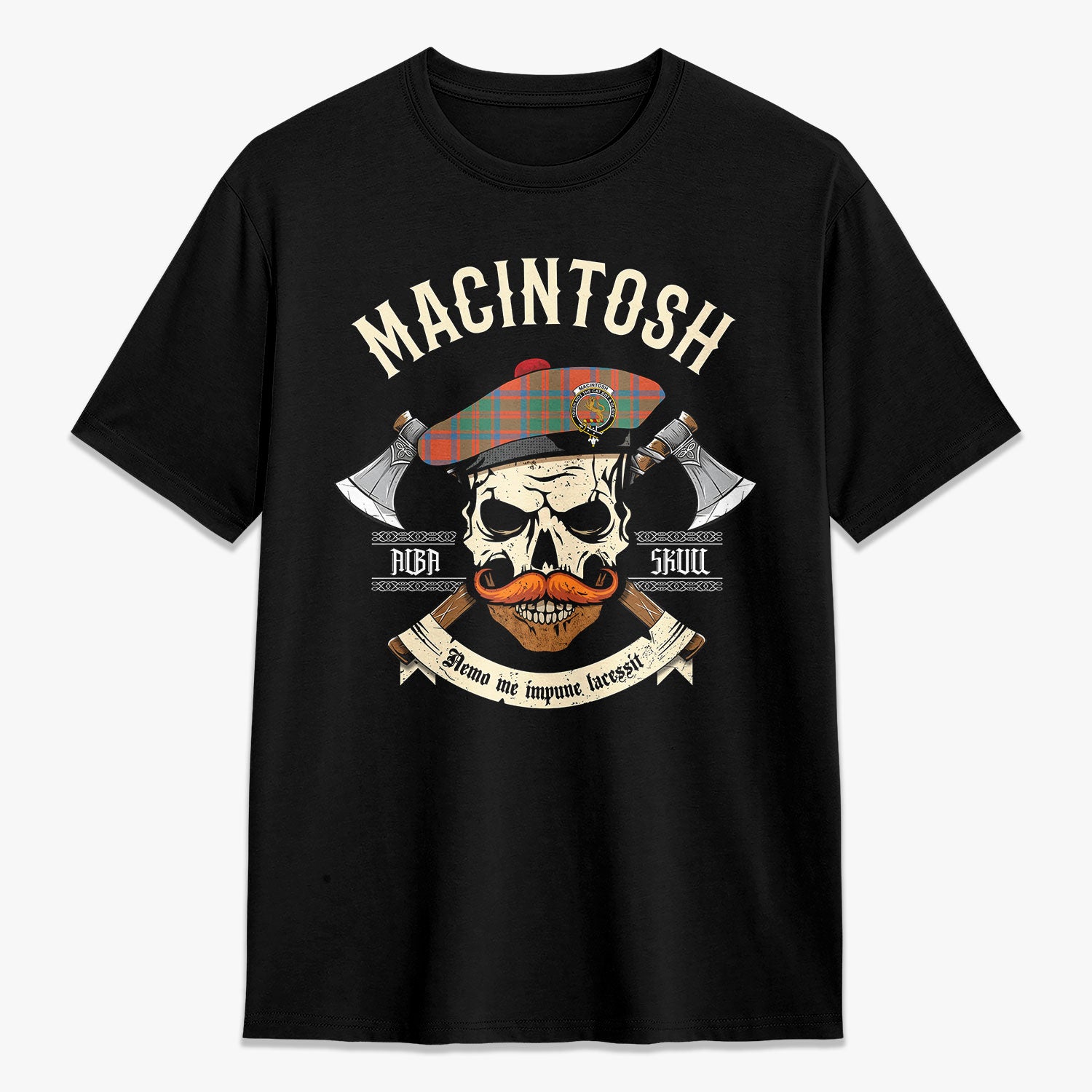 MacIntosh Ancient Tartan Crest 2D T-shirt - Alba Skull Style,