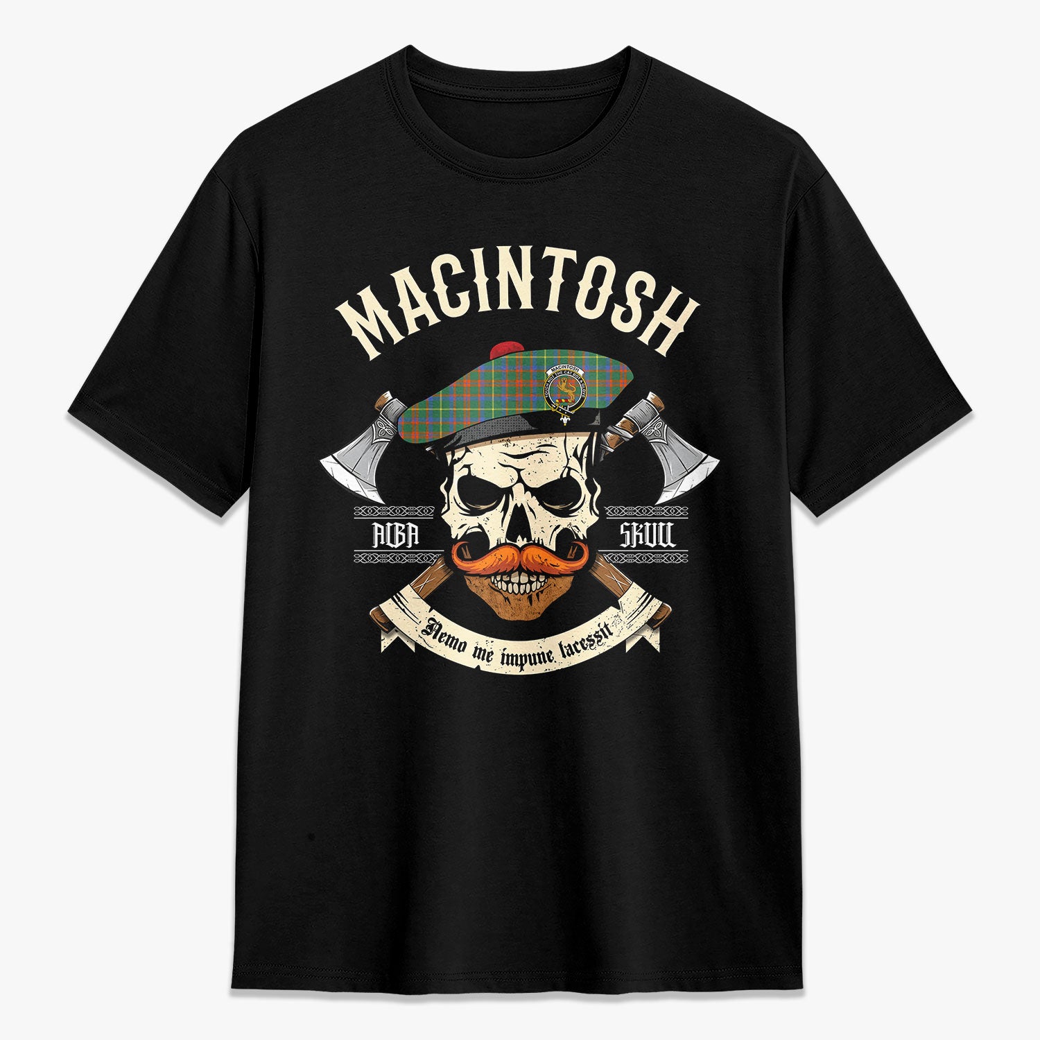MacIntosh Hunting Ancient Tartan Crest 2D T-shirt - Alba Skull Style