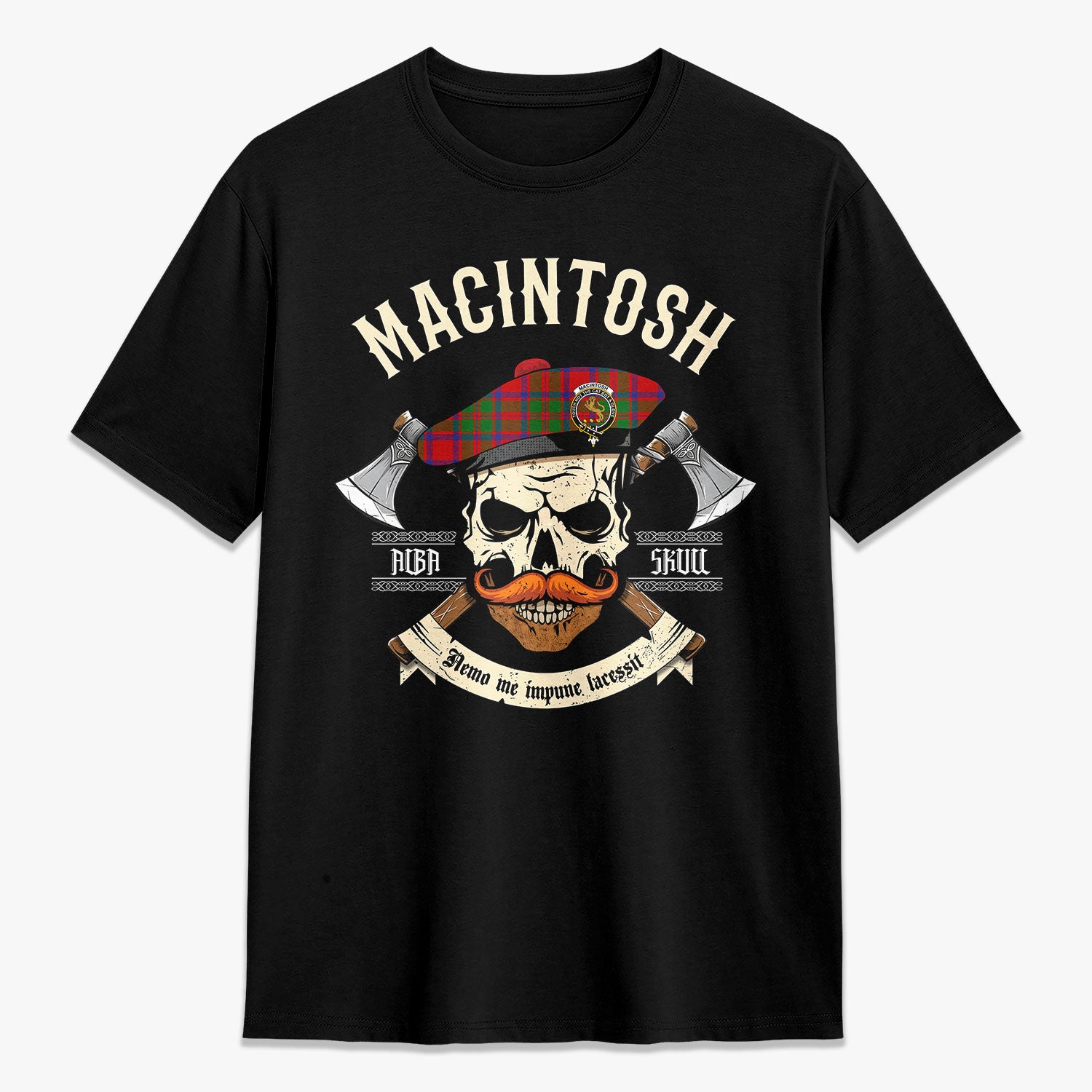 MacIntosh Modern Tartan Crest 2D T-shirt - Alba Skull Style,