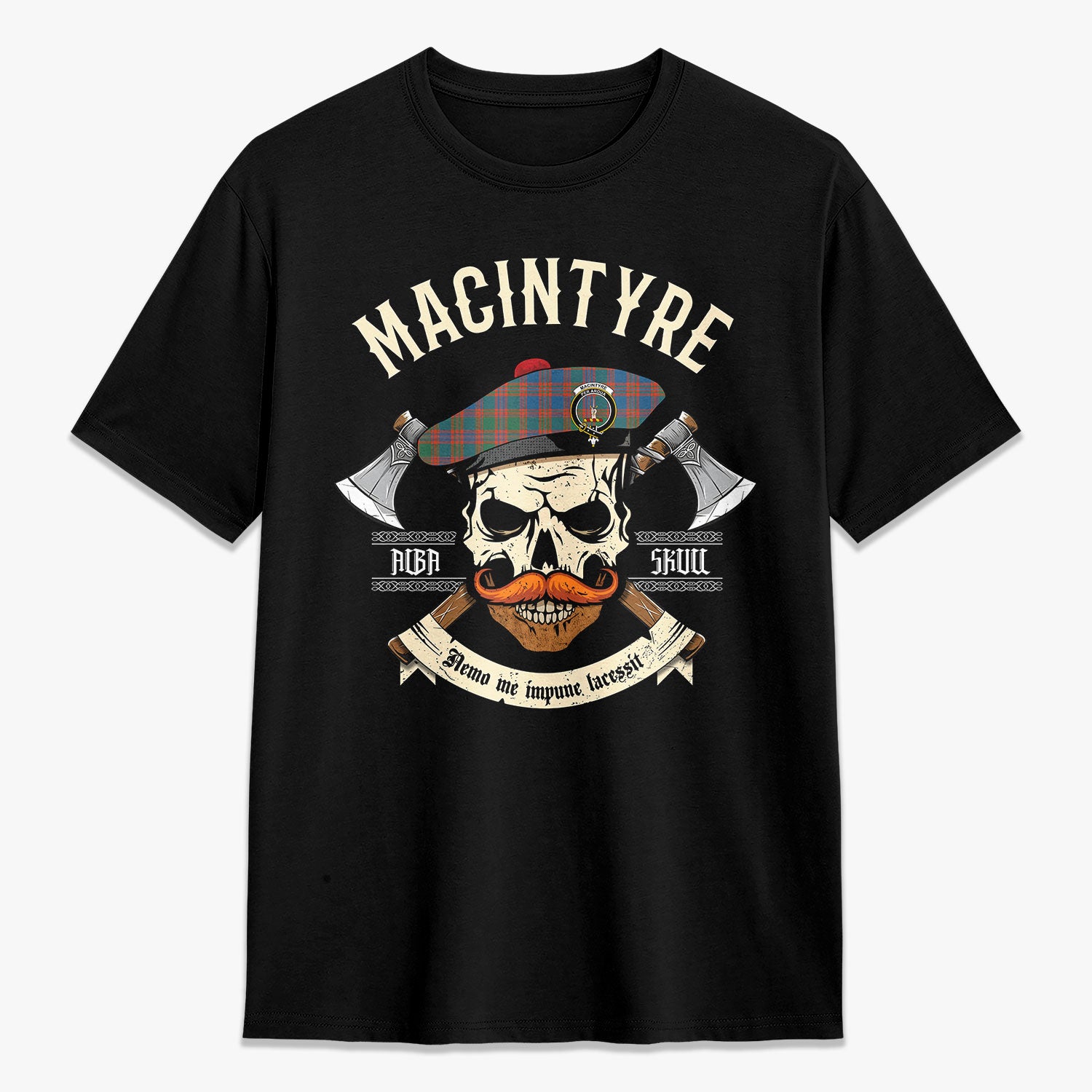 MacIntyre Ancient Tartan Crest 2D T-shirt - Alba Skull Style,