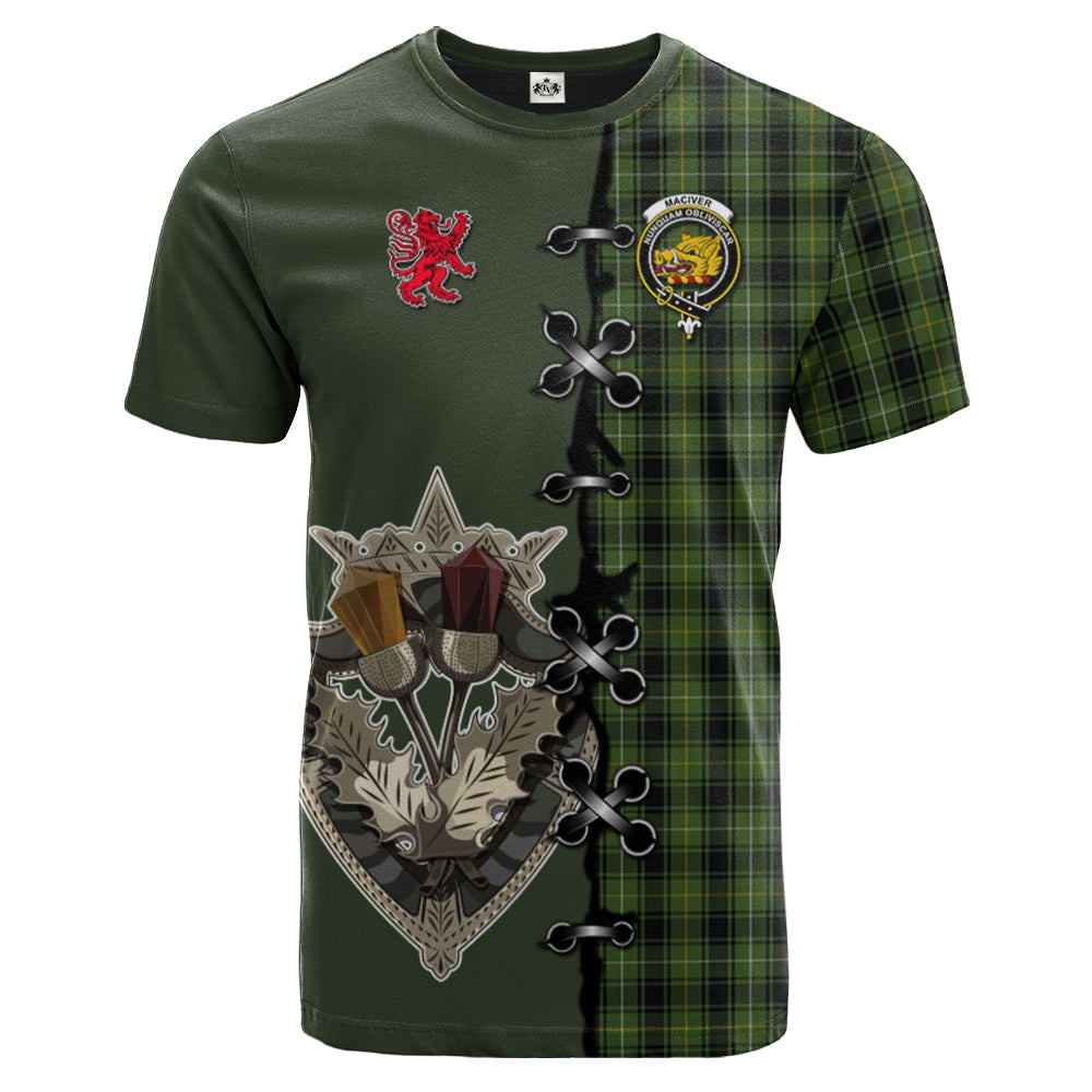MacIver Hunting Tartan T-shirt - Lion Rampant And Celtic Thistle Style