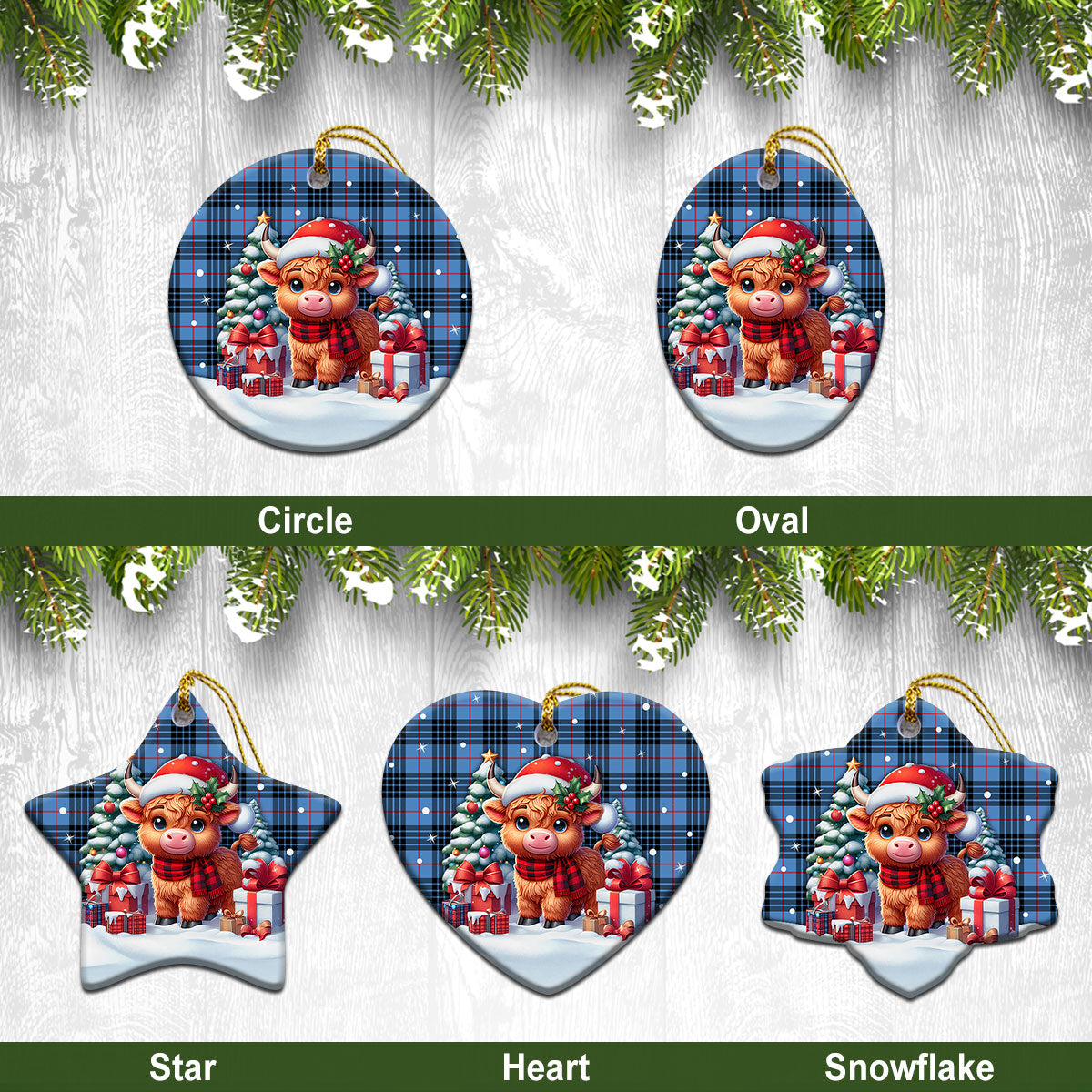MacKay Blue Tartan Christmas Ceramic Ornament - Highland Cow Winter Style