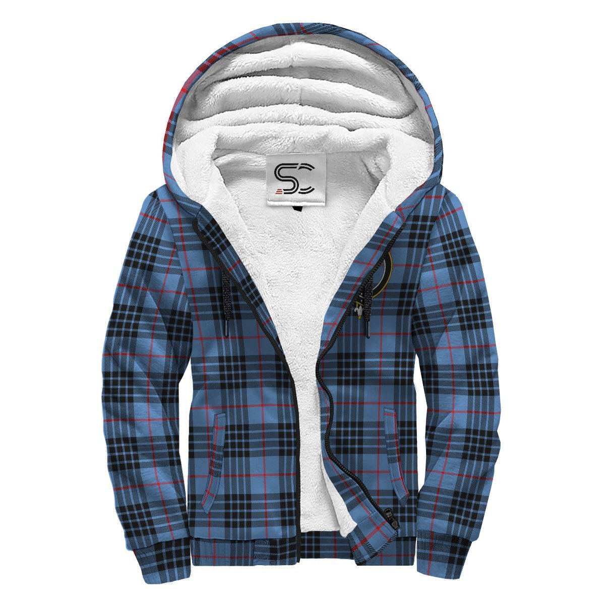 MacKay Blue Tartan Crest Sherpa Hoodie