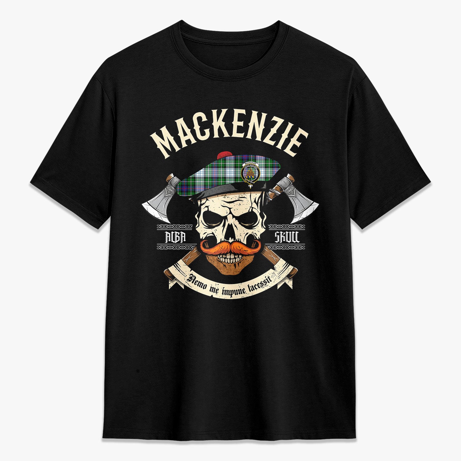 MacKenzie Dress Modern Tartan Crest 2D T-shirt - Alba Skull Style,