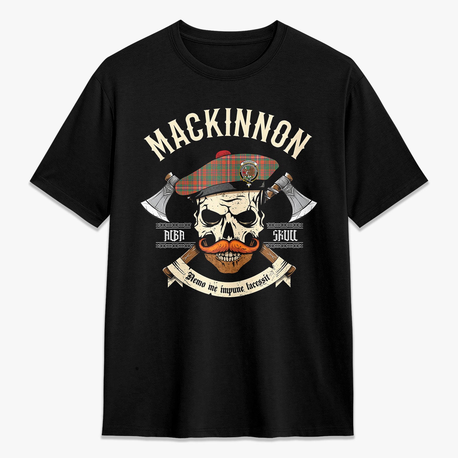 MacKinnon Ancient Tartan Crest 2D T-shirt - Alba Skull Style,