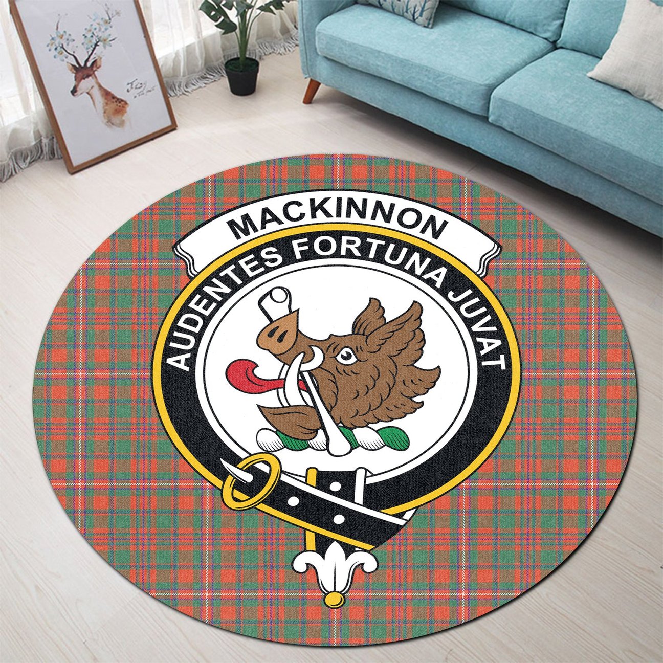 MacKinnon Ancient Tartan Crest Round Rug