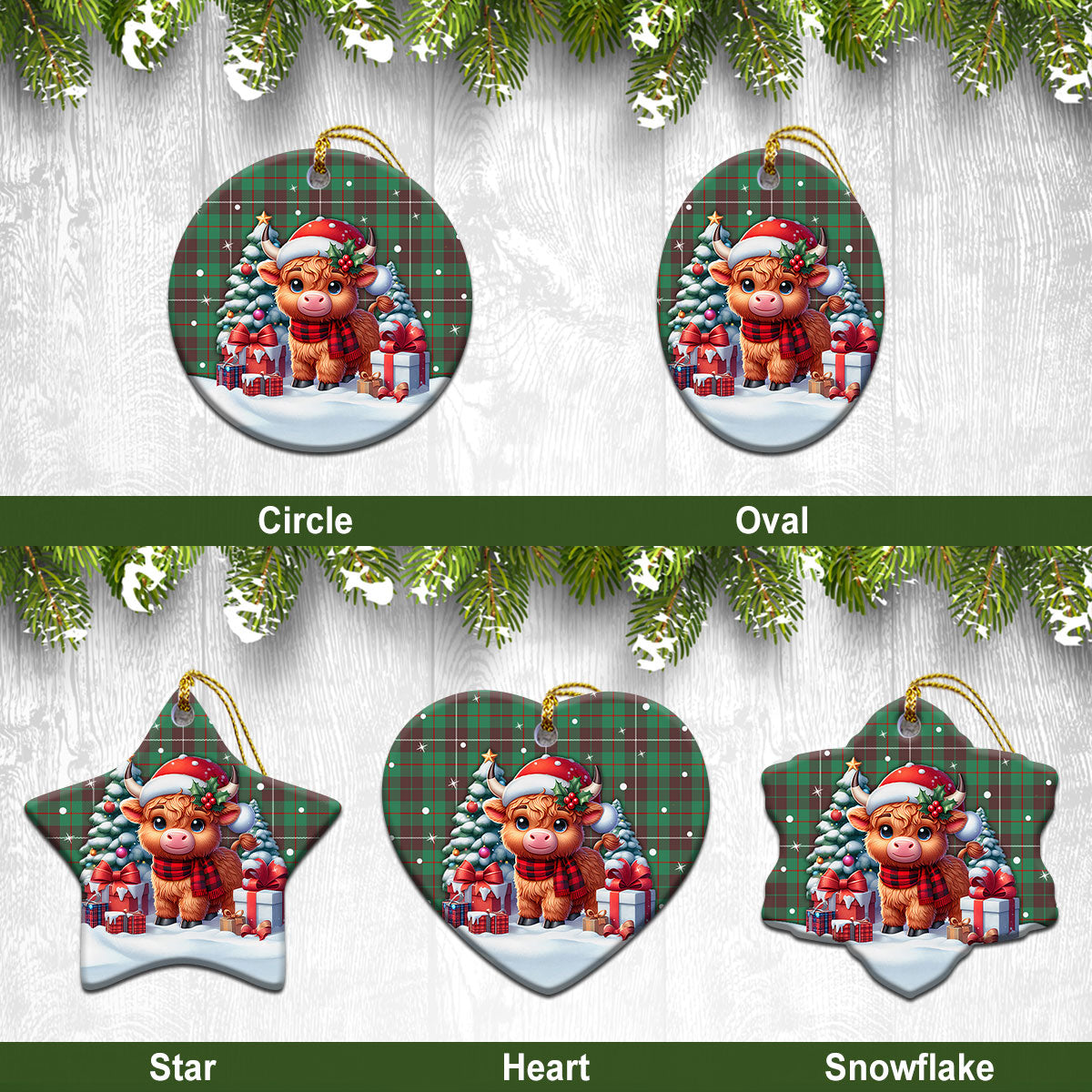 MacKinnon Hunting Ancient Tartan Christmas Ceramic Ornament - Highland Cow Winter Style