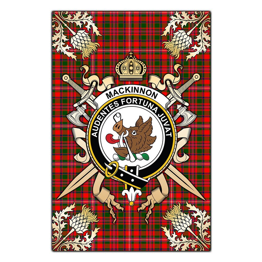 MacKinnon Modern Tartan Crest Black Garden Flag - Gold Thistle Style