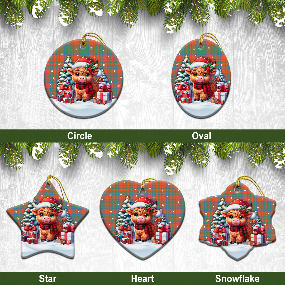 MacKintosh Ancient Tartan Christmas Ceramic Ornament - Highland Cow Winter Style
