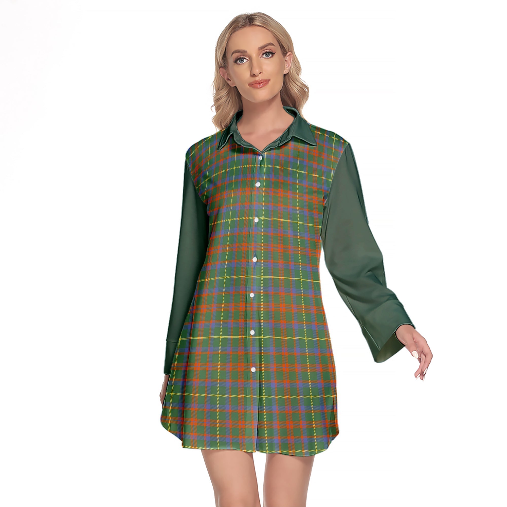 MacKintosh Hunting Ancient Tartan Women's Lapel Shirt Dress With Long Sleeve