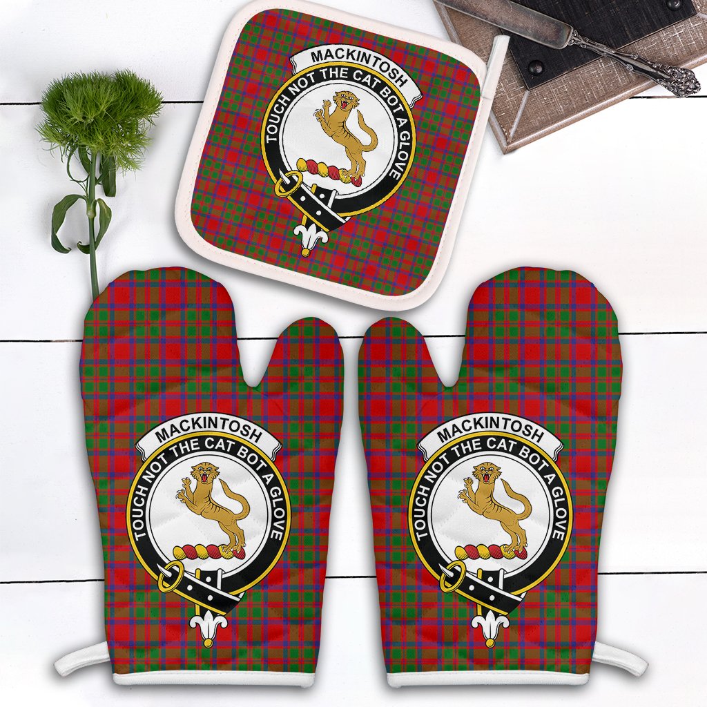 MacKintosh Modern Tartan Crest Oven Mitt And Pot Holder (2 Oven Mitts + 1 Pot Holder)