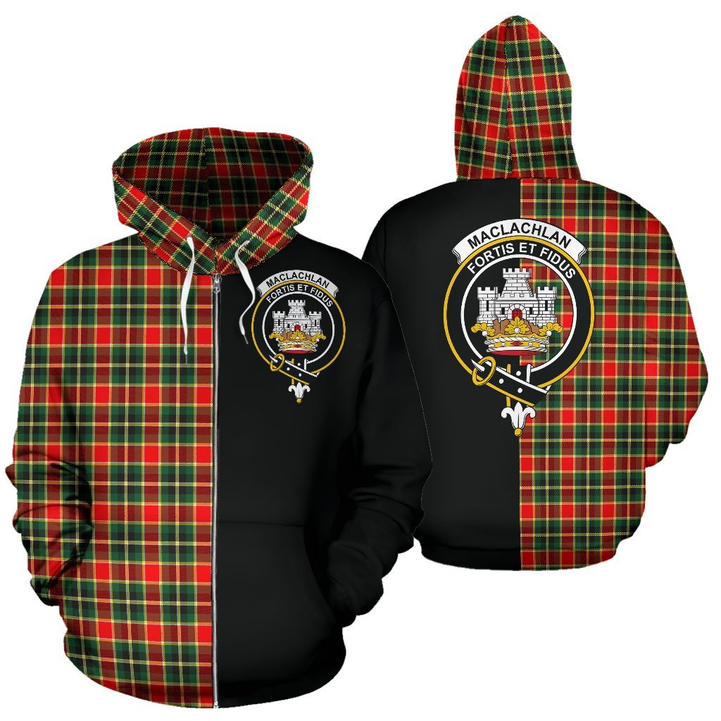 MacLachlan Hunting Modern Tartan Crest Zipper Hoodie - Half Of Me Style