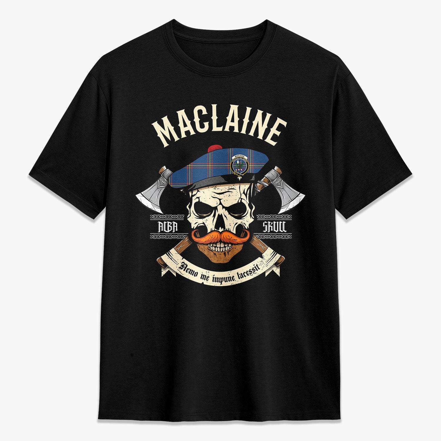 MacLaine of Loch Buie Hunting Ancient Tartan Crest 2D T-shirt - Alba Skull Style,