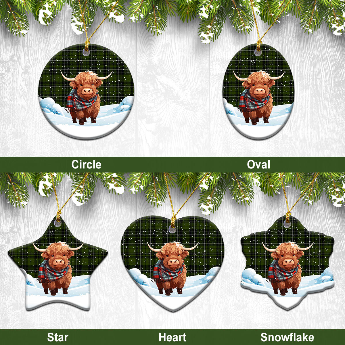 MacLean Hunting Tartan Christmas Ceramic Ornament - Highland Cows Snow Style