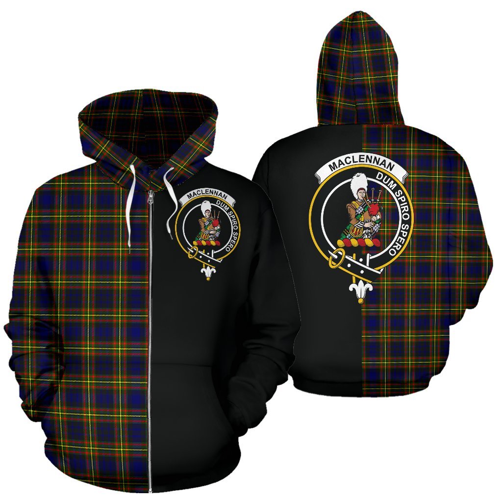MacLellan Modern Tartan Crest Zipper Hoodie - Half Of Me Style