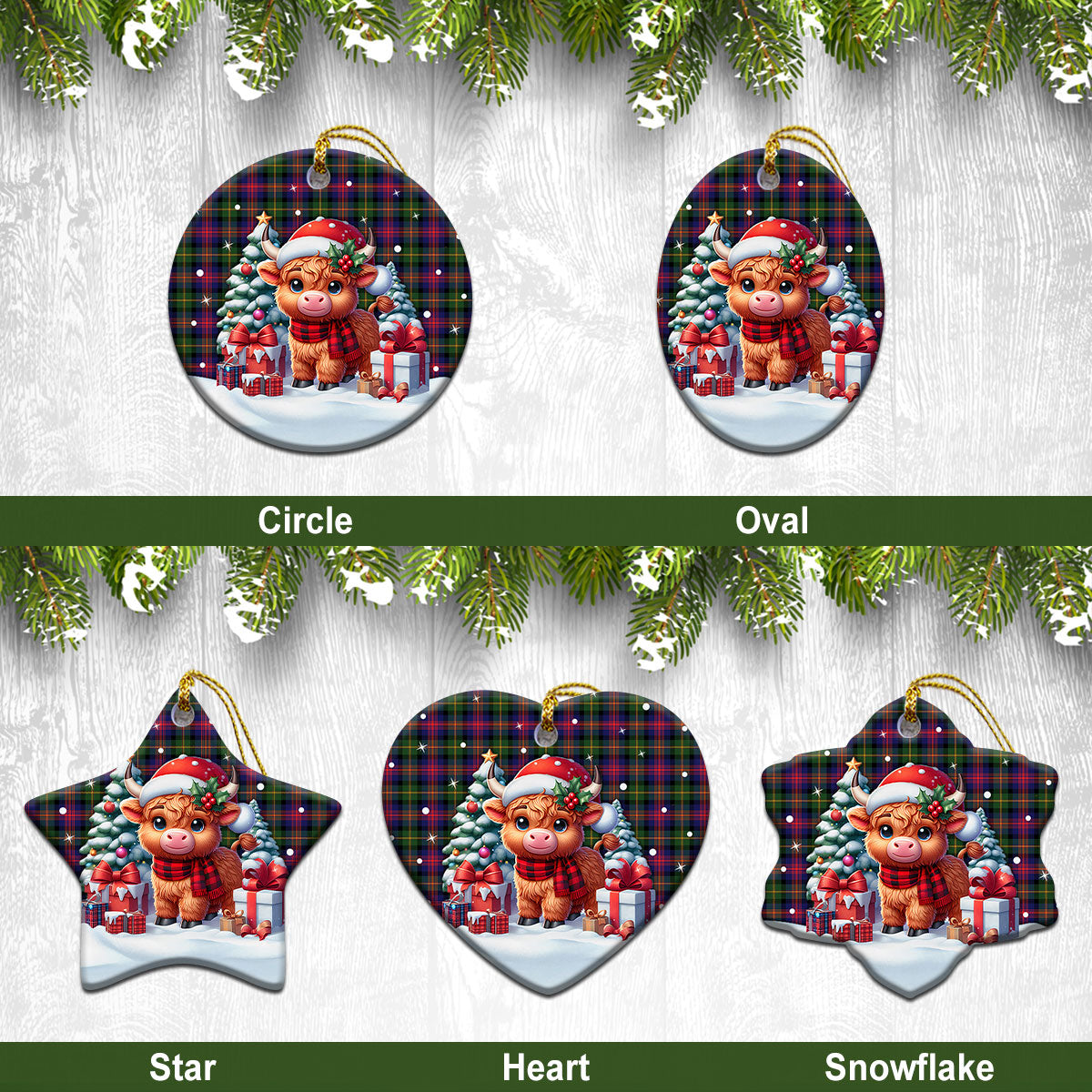 MacLennan Modern Tartan Christmas Ceramic Ornament - Highland Cow Winter Style