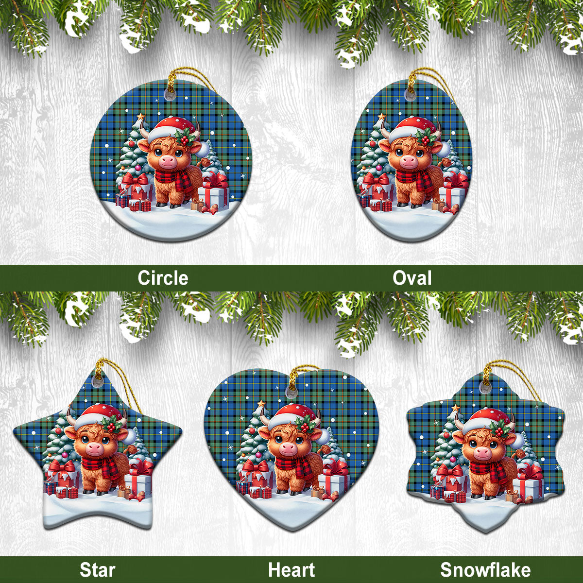 MacLeod of Harris Ancient Tartan Christmas Ceramic Ornament - Highland Cow Winter Style