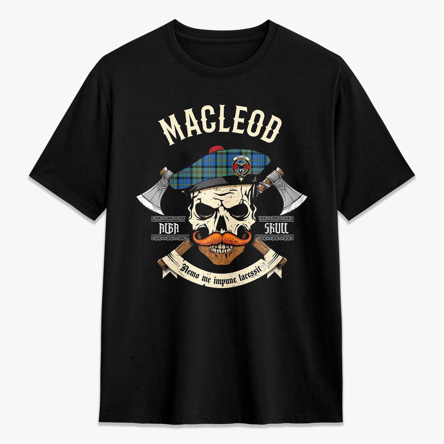 MacLeod of Harris Ancient Tartan Crest 2D T-shirt - Alba Skull Style