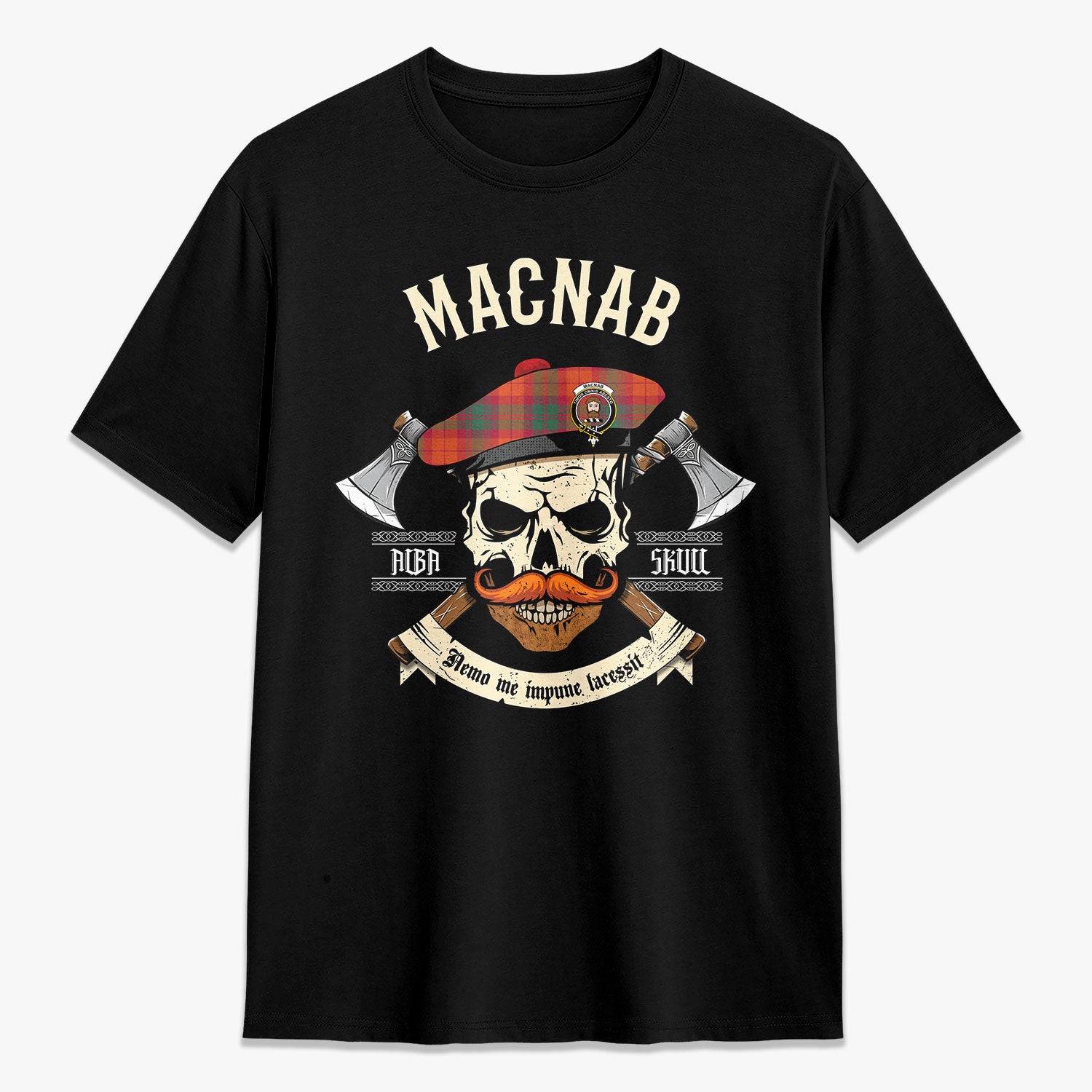 MacNab Ancient Tartan Crest 2D T-shirt - Alba Skull Style,