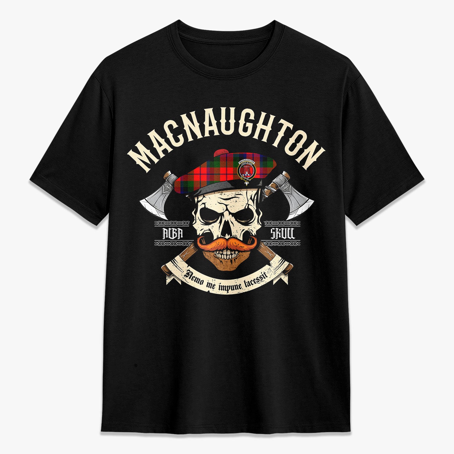 MacNaughton Modern Tartan Crest 2D T-shirt - Alba Skull Style,